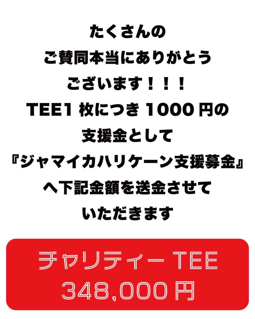皆様が予約購入していただいたTEE1枚につき1000円の支援金は